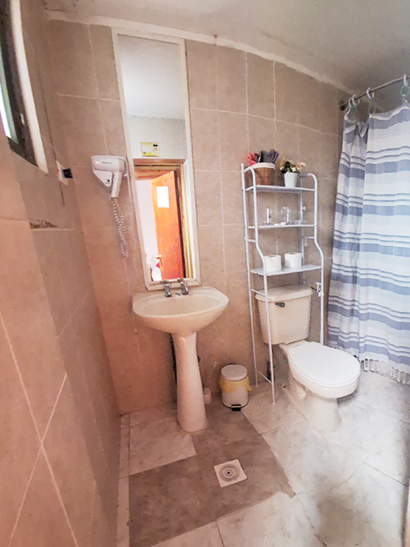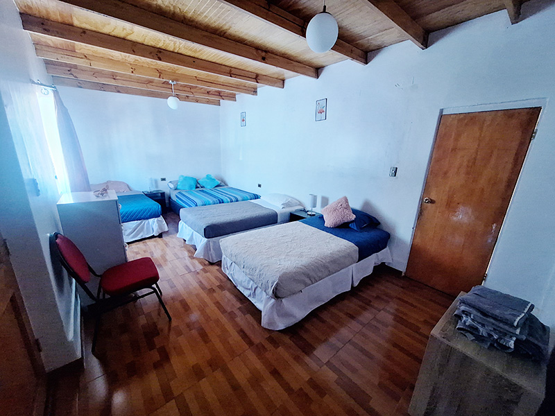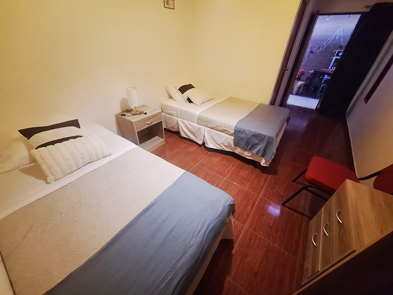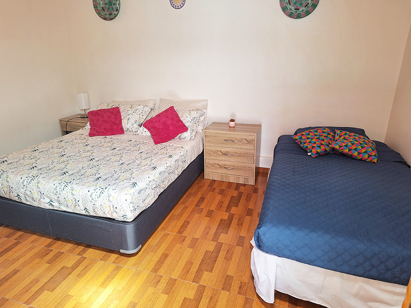 Habitación para 3 personas, con una decoración sencilla, ideal para matrimonio con hijos o un grupo de amigos. Cuenta con armario, baño privado con ducha. La Superficie de la habitación es de 20 metros cuadrados. Posee cama matrimonial y una cama de plaza y media.